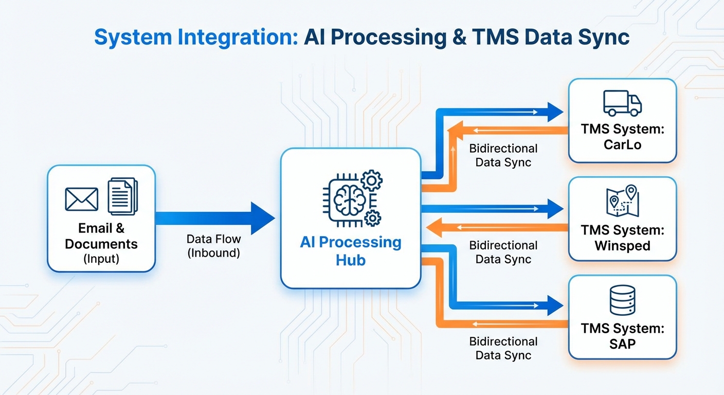 Ihre Disponenten verbringen 60% ihrer Zeit mit Dateneingabe statt Disposition. KI ändert das — ohne Ihr TMS zu ersetzen.