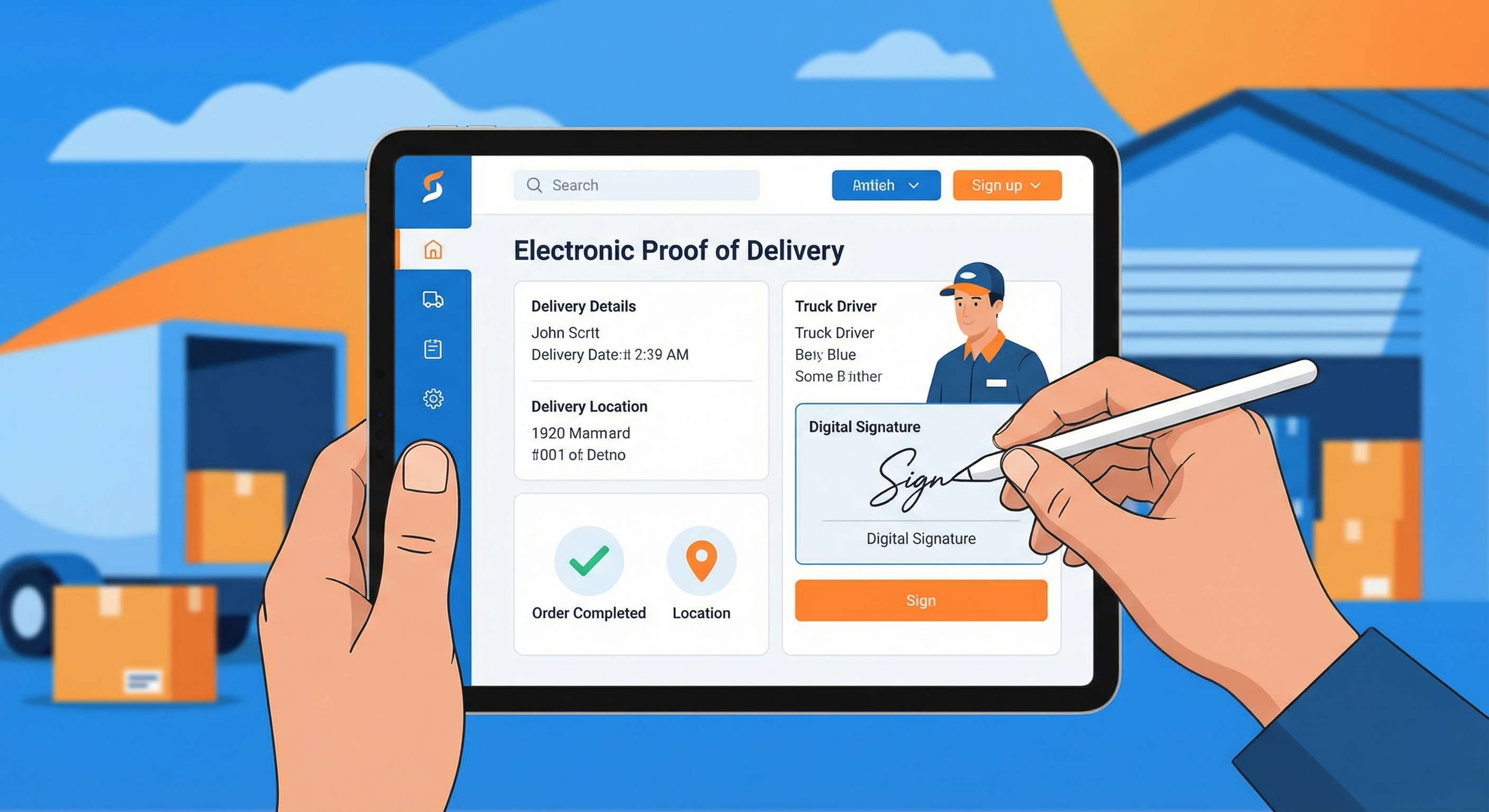 Elektronischer Lieferscheinnachweis. Klingt technisch, ist aber simpel: Ihr Fahrer unterschreibt nicht auf Papier, sondern auf dem Tablet. Das Dokument landet direkt in Ihrem System. Fertig.
